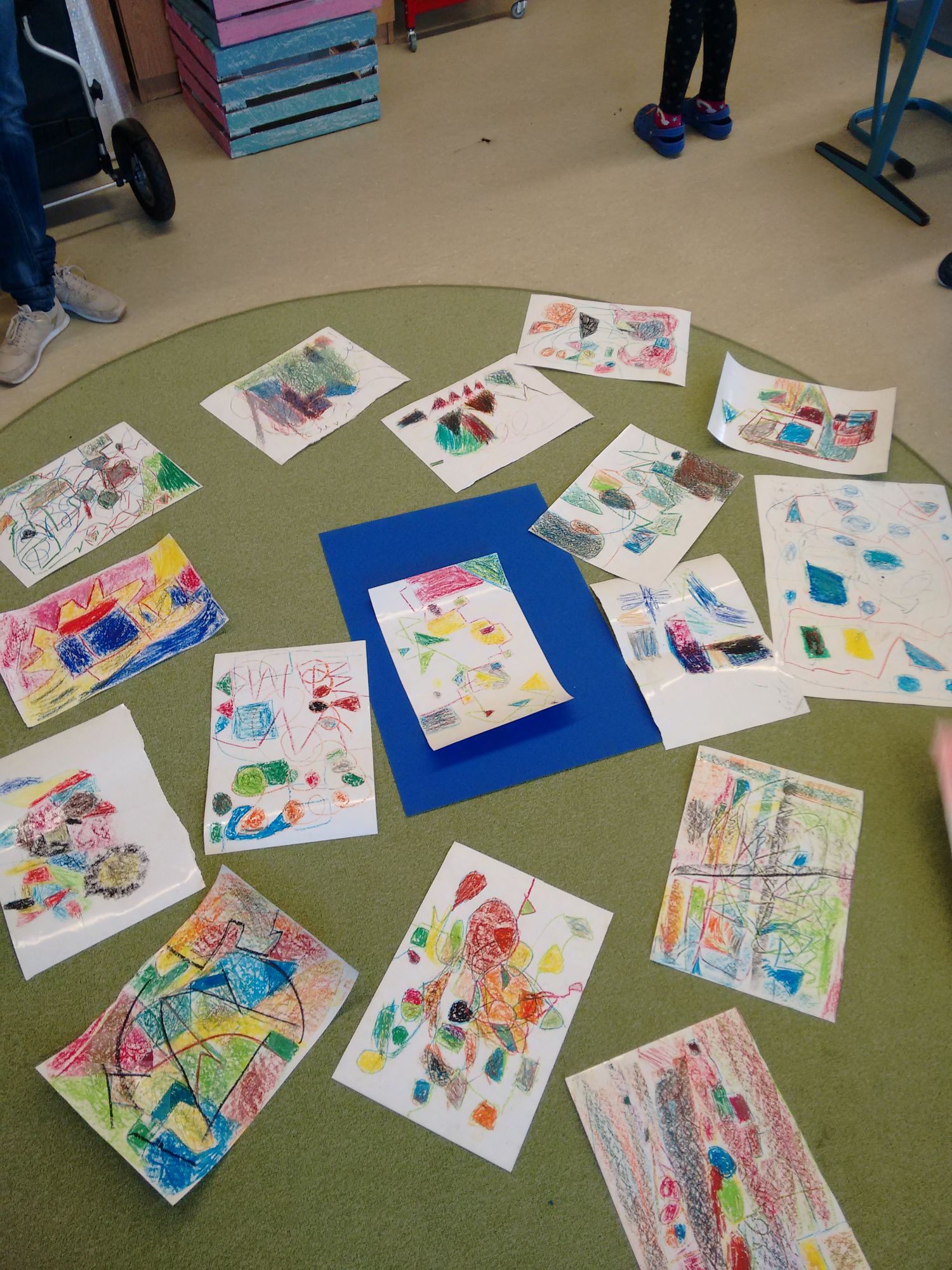 Die Schüler:innen können in entspannter Atmosphäre unter Anleitung üben, ihren inneren Impuls bildhaft werden zu lassen. Langsam, Schritt für Schritt verwandelt sich die Linie, der Strich durch bewusste Wahrnehmung in eine lebendige Linie. Diese führt im weiteren Verlauf des Projektes in die Grundformenlinien, dann in Grundformenlinien-Kombinationen bis hin in eine freie Flächengestaltung mit vielfältigen Farbflächen.