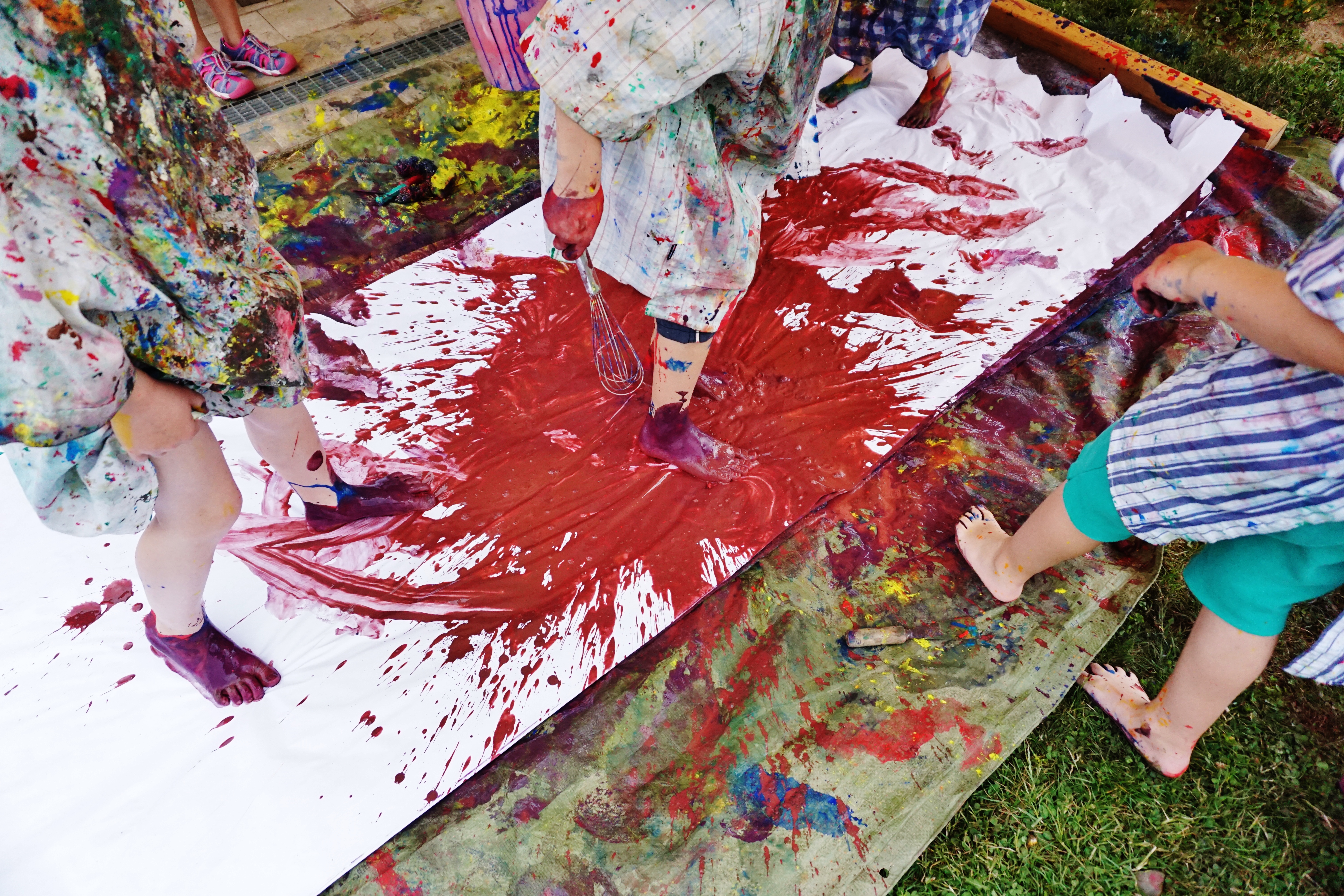 Sonstiges Aufteilung der Klasse empfohlen. Es empfiehlt sich, nicht mehr als 12 aktiv teilnehmen zu lassen. Ein Malerkittel oder Kleidung, die dreckig werden darf, sollte getragen werden und/oder Wechselkleidung. Weiße Kleidung empfiehlt sich, um danach eine bunte Erinnerung an dieses Event tragen zu können.  Für das spätere Abwaschen der Farbe von den restlichen Hautpartien sollte von der jeweiligen Einrichtung Wasser zur Verfügung gestellt werden sowie Handtücher/Küchenrollen o.Ä.