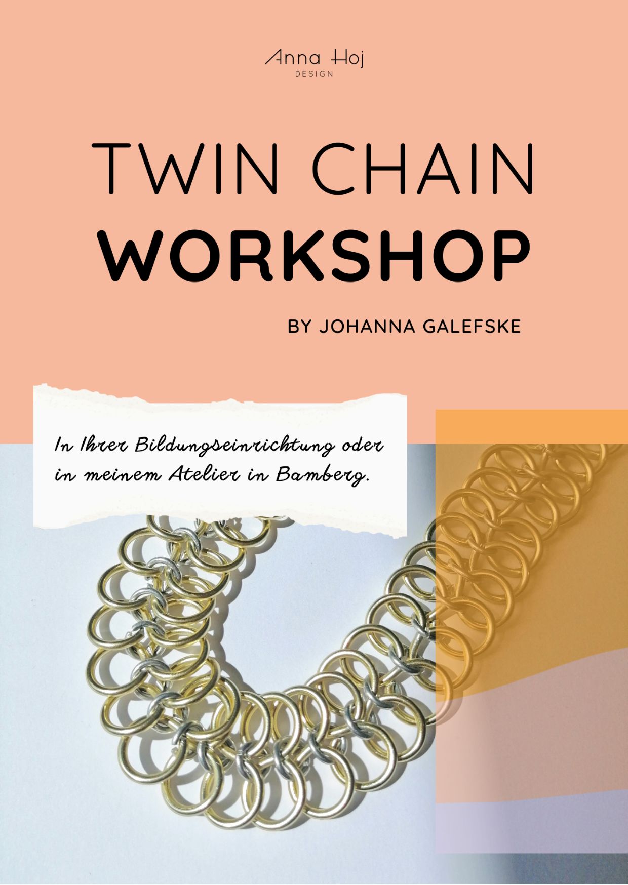 In den Workshops von ANNA HOJ DESIGN erlernst du das Arbeiten mit Draht und erstellst dein eigenes einzigartiges Schmuckstück. Egal, ob du Anfänger:in bist oder bereits Erfahrung hast, Johanna Galefske wird dich durch den Prozess führen und dir alle notwendigen Fähigkeiten vermitteln. Sie stellt alle Materialien und Werkzeuge zur Verfügung, damit du deine Kreativität voll ausleben kannst.